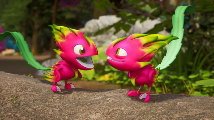 Zunächst versucht der lustige Drachenfruchtfliegus mit allerlei Rufen und Geräuschen Ginger zu veräppeln. Scheinbar will er nicht sagen, wie er wirklich klingt. Bis noch ein weiterer Drachenfruchtfliegus auftaucht.