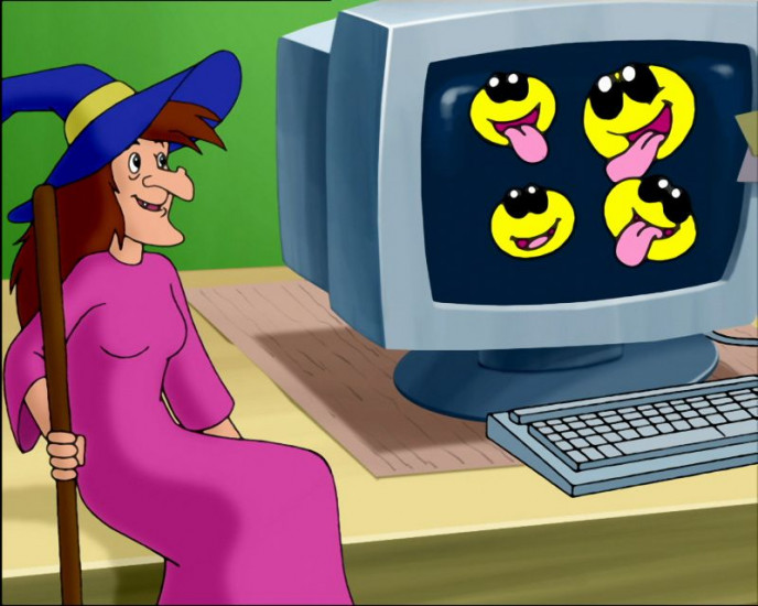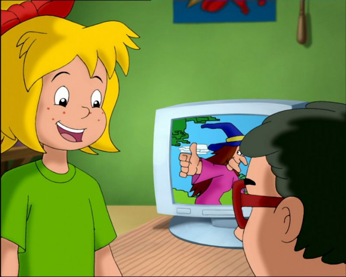 Bibi hat eine Idee, wie die Computerhexe mit ihrem Chaos sogar etwas Gutes tun kann. Sie fordert die Hexe auf, alles wieder in Ordnung zu bringen. Zum Glück hat die Genossin ein Einsehen.