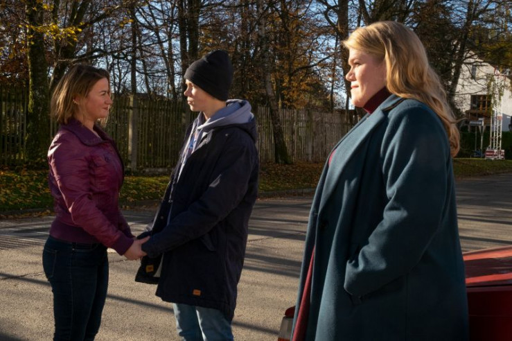 Mit Hilfe der Ehefrau Eva (Julia Jäger, M.) und dem Sohn des Opfers Jannik Selinski (Andreas Warmbrunn, l.), versucht sich Annabell Lorenz (Stephanie Stumph, r.) ein Bild vom Leben und Umfeld des Toten zu machen.