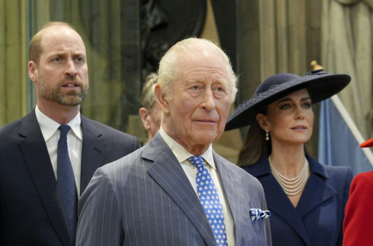 09.03.2026, Großbritannien, London: König Charles III. (M), Thronfolger Prinz William (l) und Kate, Prinzessin von Wales, nehmen an der jährlichen Feier zum Commonwealth Day in der Westminster Abbey teil.