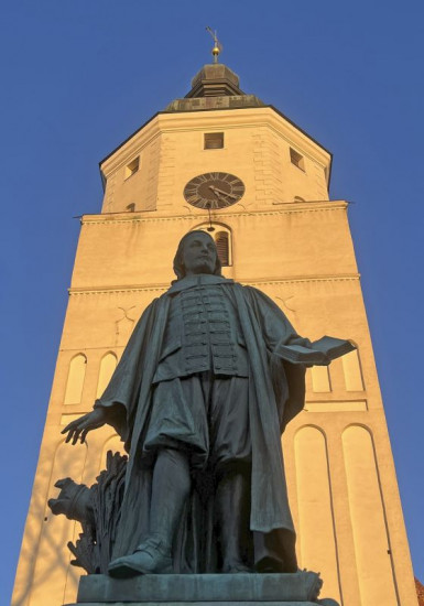 Seit über 350 Jahren berühren Kirchenliedtexte von Paul Gerhardt Menschen auf der ganzen Welt. Voller Poesie und Wortgewalt geben sie Zuversicht in schweren Zeiten. Dabei hatte der berühmte Theologe selbst ein Leben voller Schicksalsschläge. Was sagen uns seine Liedtexte heute? Können sie immer noch in Krisenzeiten helfen? Eine Entdeckungsreise zu Paul Gerhardt von Berlin nach Lübben. - Paul-Gerhardt-Denkmal in Lübben