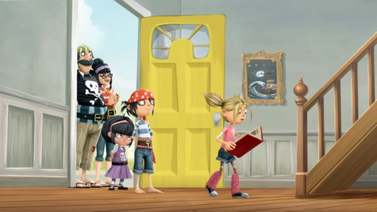 Stell' dir vor, nebenan ziehen neue Nachbarn ein, und ZACK steht da ein riesiges Piratenschiff im Vorgarten! So geht es Mathilda, und Piratenjunge Jim wird schnell zu ihrem besten Freund. Die Piraten von nebenan bringen richtig Schwung in die verschlafene Küstenstadt Schnarch am Deich: Der Piraten-Opa verlässt das Schiff nach Möglichkeit nie, denn an Land wird er "landkrank". Jims kleine Schwester Goldstück ist eine wilde kleine Piratin, und die Eltern Jolley-Rogers finden es ganz normal, wenn ihre Kinder auf Beutezug gehen und auch regelmäßig am Strand Schätze finden. Gemeinsam mit dem Hund Knochen und dem Papagei Krächz bringen sie Frau Biber immer wieder so richtig auf die Palme. Die wohnt ebenfalls in der Nähe und wünscht sich, dass die Familie Jolley-Rogers so schnell wie möglich wieder aus der Stadt verschwindet. Zusammen mit ihren Schulfreunden erleben Matilda und Jim wilde Abenteuer an Land und zur See. Und wehren sich dabei immer wieder erfolgreich gegen Frau Biers Gemeinheiten. Nach Buchvorlage von "Die Piraten von nebenan" von Jonny Duddle