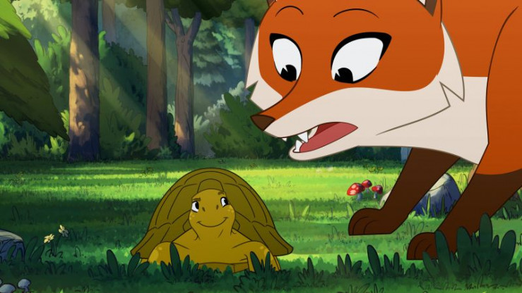 Schildkröte Törtel (l.) und Füchsin Wendy (r.) müssen etwas unternehmen: Die Bewohnenden von Müggeldorf möchten die Wildschweine - und damit ihre Freunde - aus Müggeldorf verjagen.