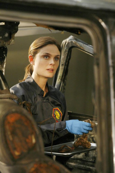 Brennan (Emily Deschanel) untersucht die Überreste von einer unschuldigen Hausfrau und Mutter, die in ihrem Auto in die Luft gesprengt wurde.