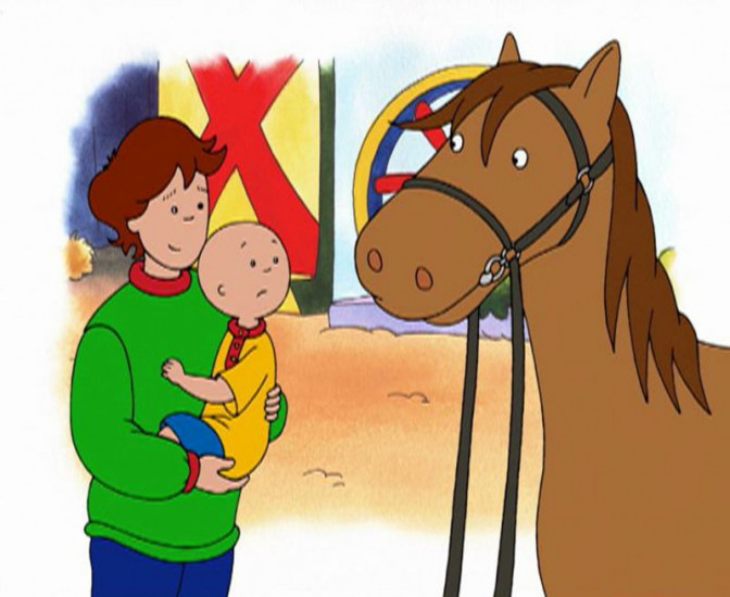 Obwohl Papi dabei ist, hat Caillou ein bißchen Angst vor dem großen Pferd.