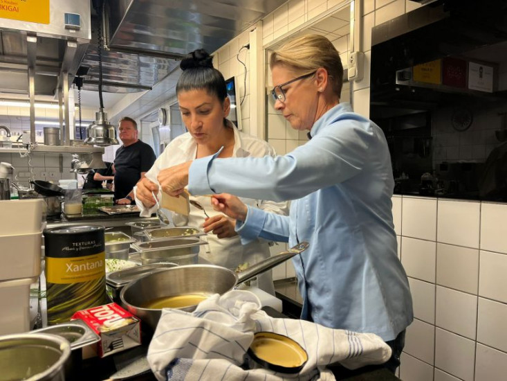 Los geht's für das Team Poletto-Oskan, das von Viktoria Fuchs ins bayerische Krün geschickt wird. Nach kurzem "Bretzel-Tasting" geht's für die beiden Köchinnen mit der Seilbahn in die Berge. Und auch kulinarisch geht's hoch hinaus, denn auf 2240 m Höhe wartet bereits die schwarze Box - und ein französisch-japanisch inspiriertes Zwei-Sterne-Gericht, das Conny und Elif kulinarisch alles abverlangen wird.