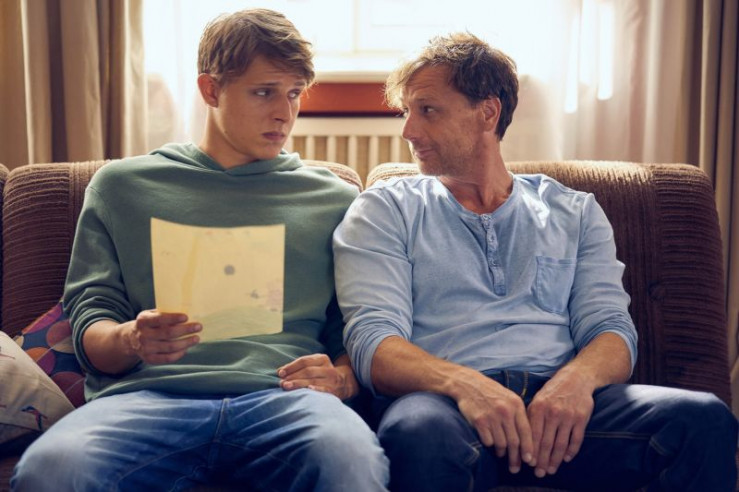 Jonas (Merlin Rose, l.) hat endlich verstanden, worum es im Leben wirklich geht. Stefan (Hendrik Duryn) ist zufrieden.