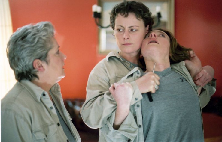 Melanie (Sigrid M. Schnückel, oben) hat herausgefunden, dass Annabelle (Bettina Lohmeyer) Mikes Mörderin ist und will sie töten...