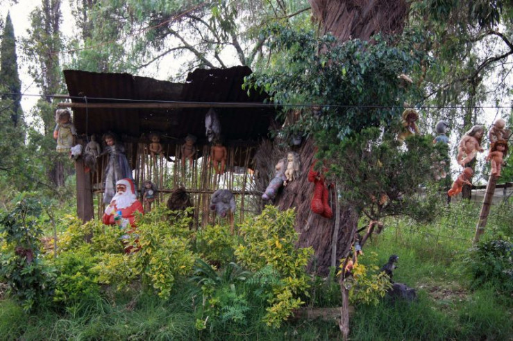 Puppen, die an Bäumen auf der Insel der Puppen (Isla de las Muñecas) in Xochimilco, Mexiko-Stadt, hängen. +++ Die Verwendung des sendungsbezogenen Materials ist nur mit dem Hinweis und Verlinkung auf RTL+ gestattet. +++