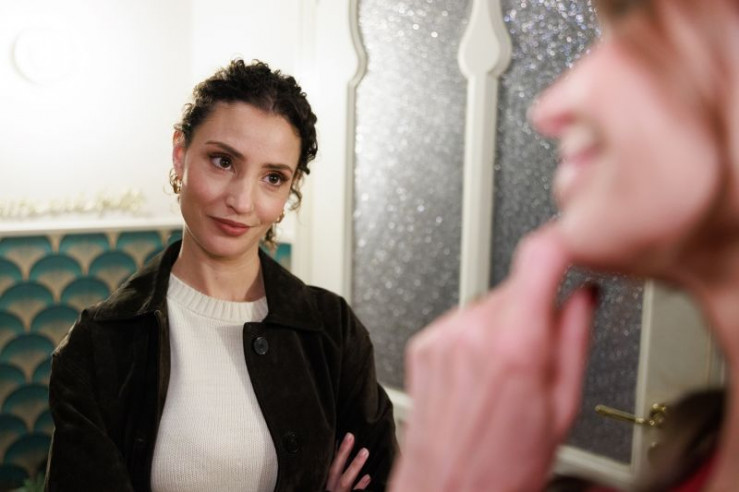 ACHTUNG SPERRFRIST! Die Veröffentlichung dieses Motives ist für alle ONLINE-MEDIEN (außer Programm-Presse) erst ab dem 12.05.2026 frei. Irene (Petra Blossey, r.) erkennt überrascht, welch großes Geheimnis Britta wahrt. Links Esma (Özge Delioglan) +++ Die Verwendung des sendungsbezogenen Materials ist nur mit dem Hinweis und Verlinkung auf RTL+ gestattet. +++