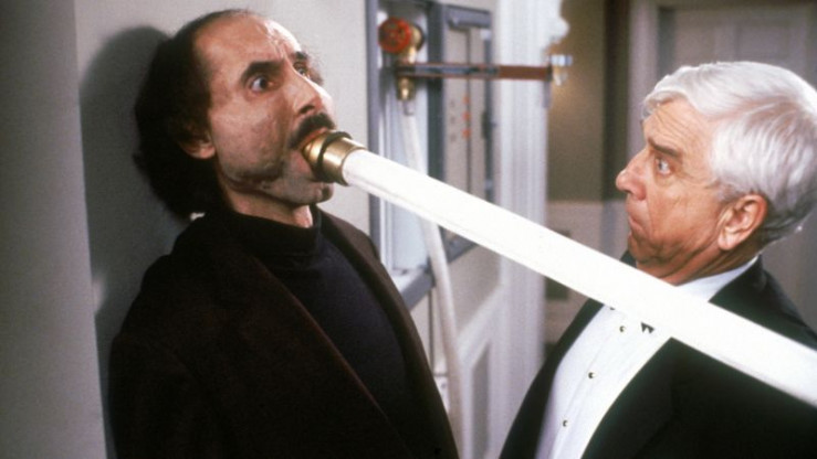 Lt. Frank Drebin (Leslie Nielsen) bewältigt die großen Herausforderungen..