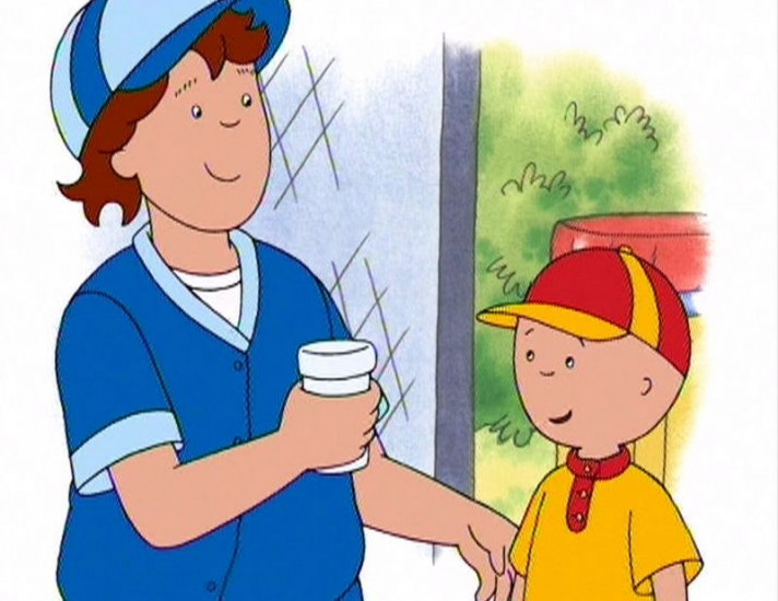 Caillou (re.) darf dem Baseball-Team als Wasserjunge helfen.