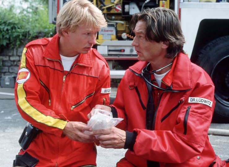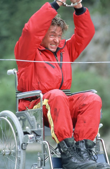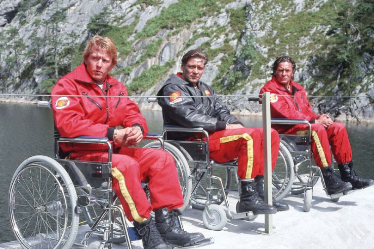 Dr. Michael Lüdwitz (Rainer Grenkowitz), der von Correr an einen Rollstuhl gefesselt am Rand der Staumauer steht, versucht sich in den Medicopter zu retten... +++ Die Verwendung des sendungsbezogenen Materials ist nur mit dem Hinweis und Verlinkung auf RTL+ gestattet. +++